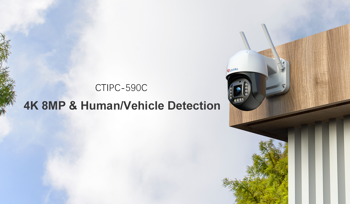 Ctronics 4K 8MP 監視カメラ、2.4/5GHz WiFi および人/車両/動物検出機能付き